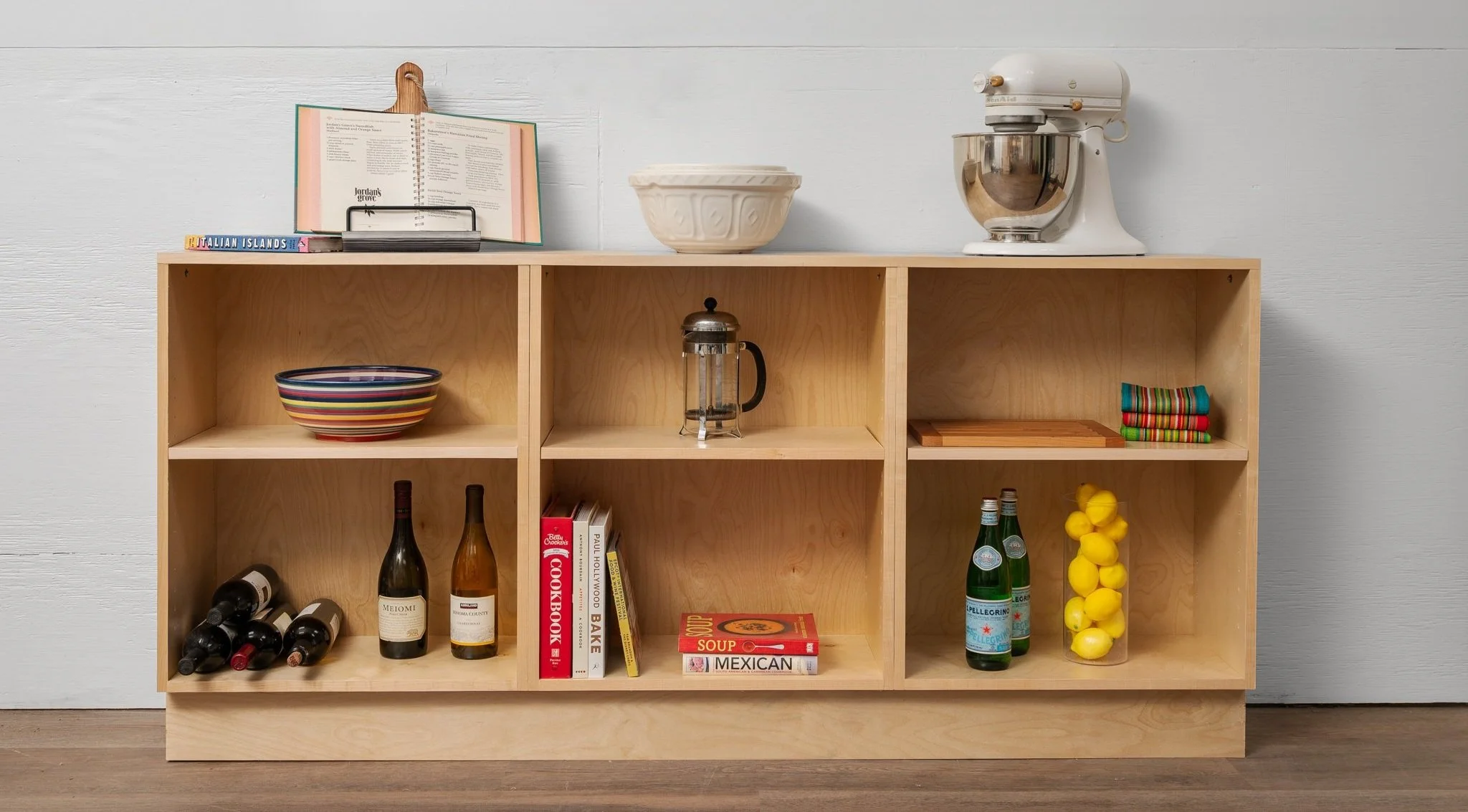 Construction is solid cabinet grade birch plywood, clear sealed for durability and to highlight the beauty of natural wood.